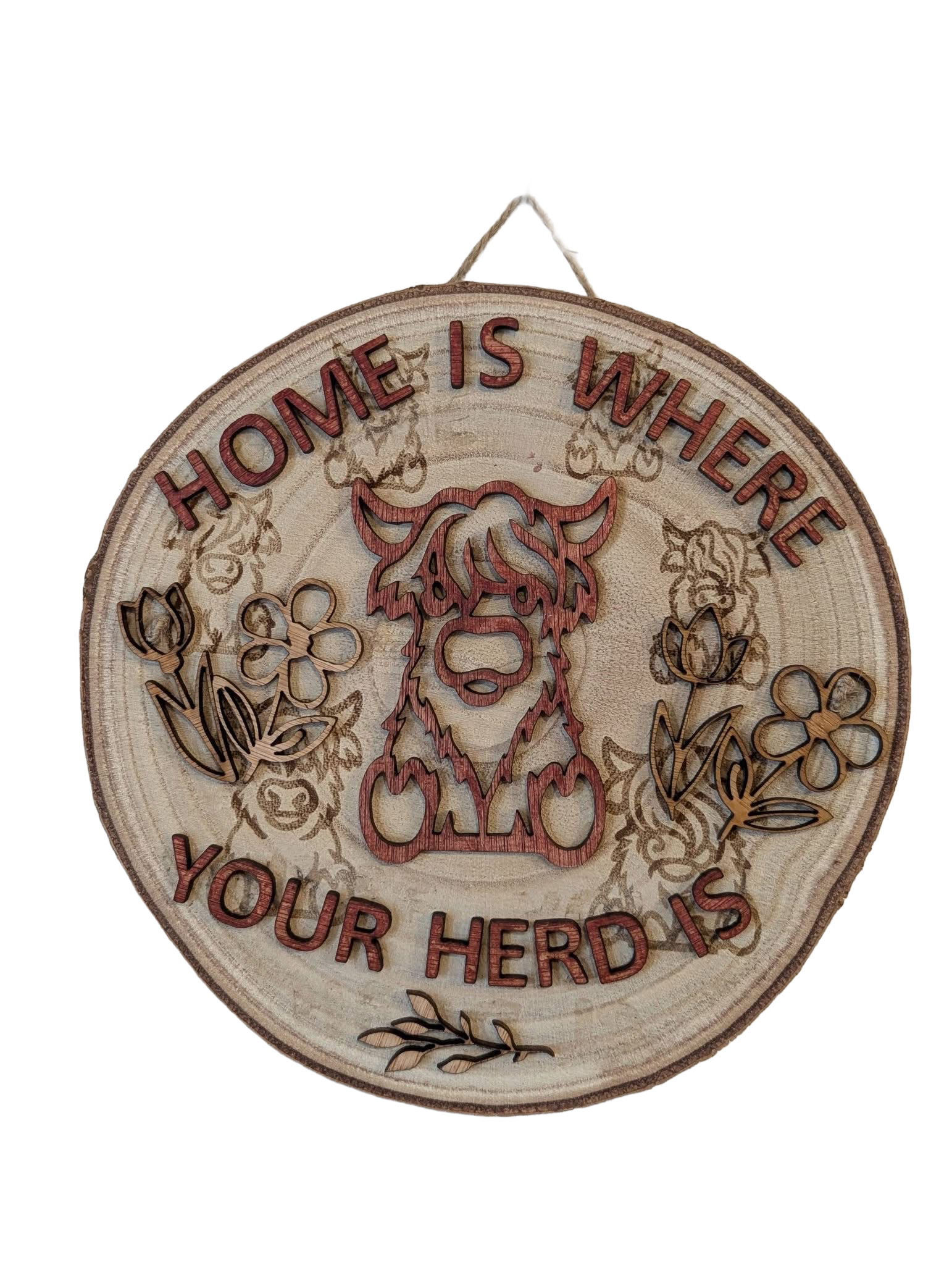 Engraved rustic 3D wooden slices.